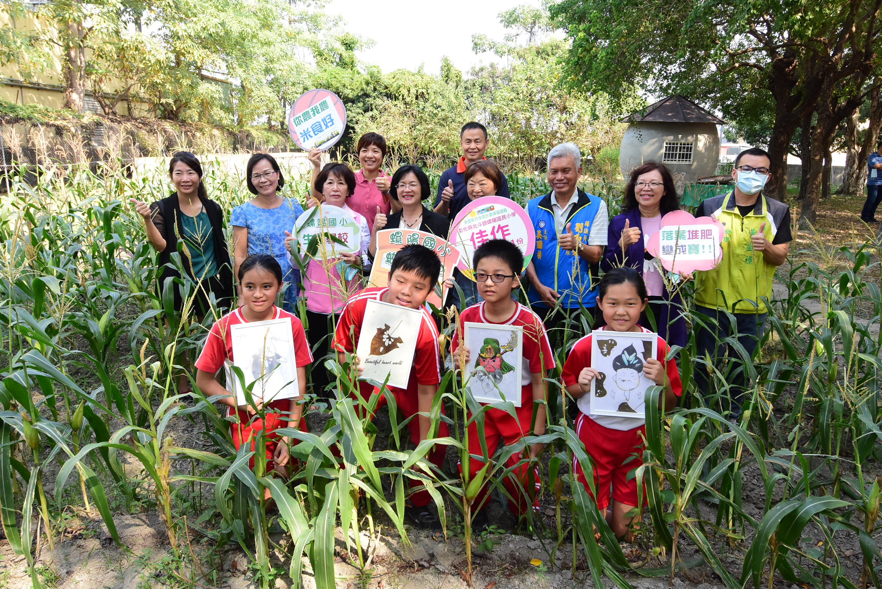王惠美表示,螺陽校內有6百餘棵樹木,落葉量也很多,校長用心與學生們將校內樹木的落葉收集並製成堆肥,透過堆肥教導孩子們有機肥料製作方式,進而將有機肥滋養農作物,友善耕作農作物,也是一種循環經濟,也減輕了落葉廢棄物進入焚化爐的用量。